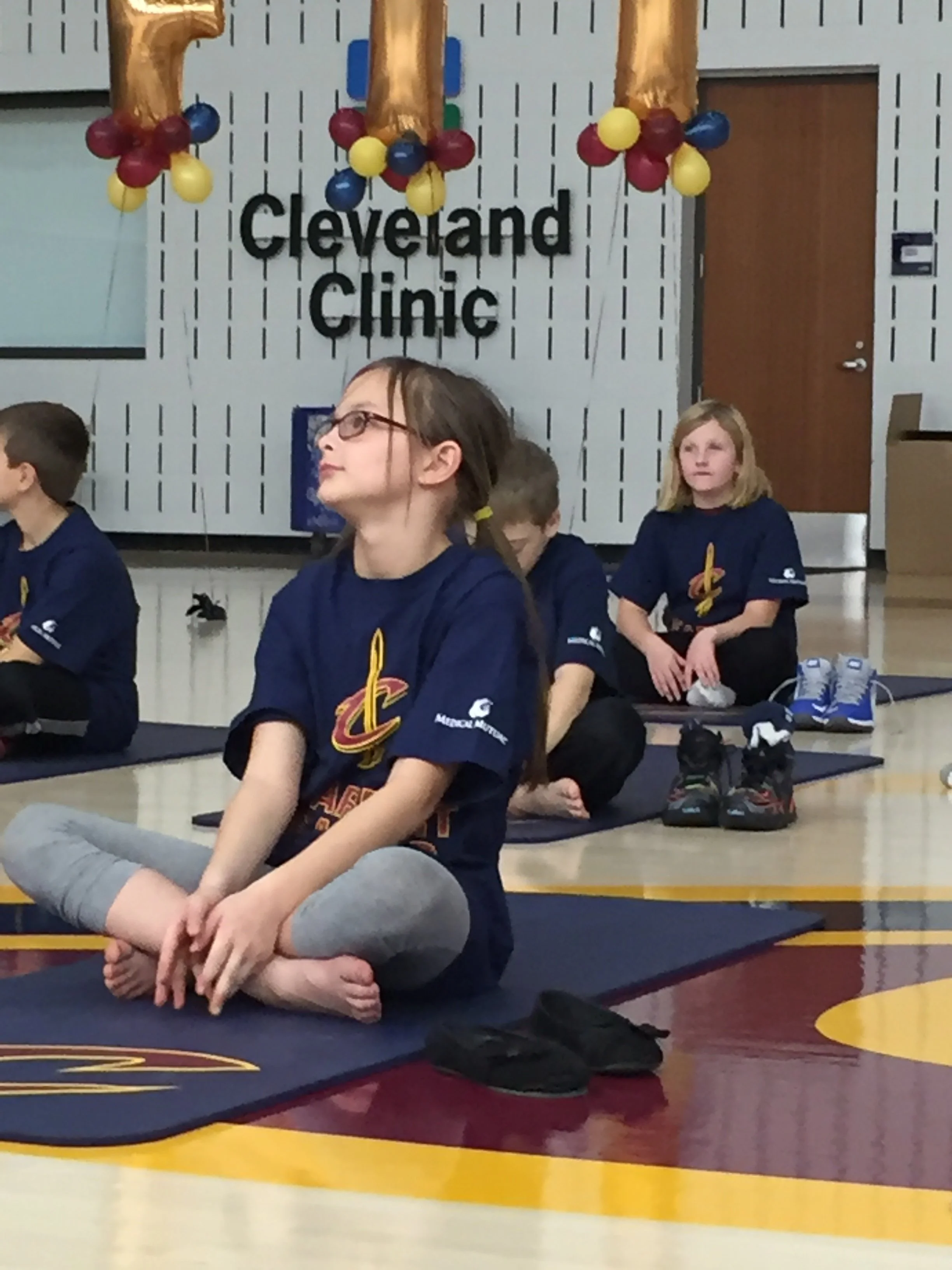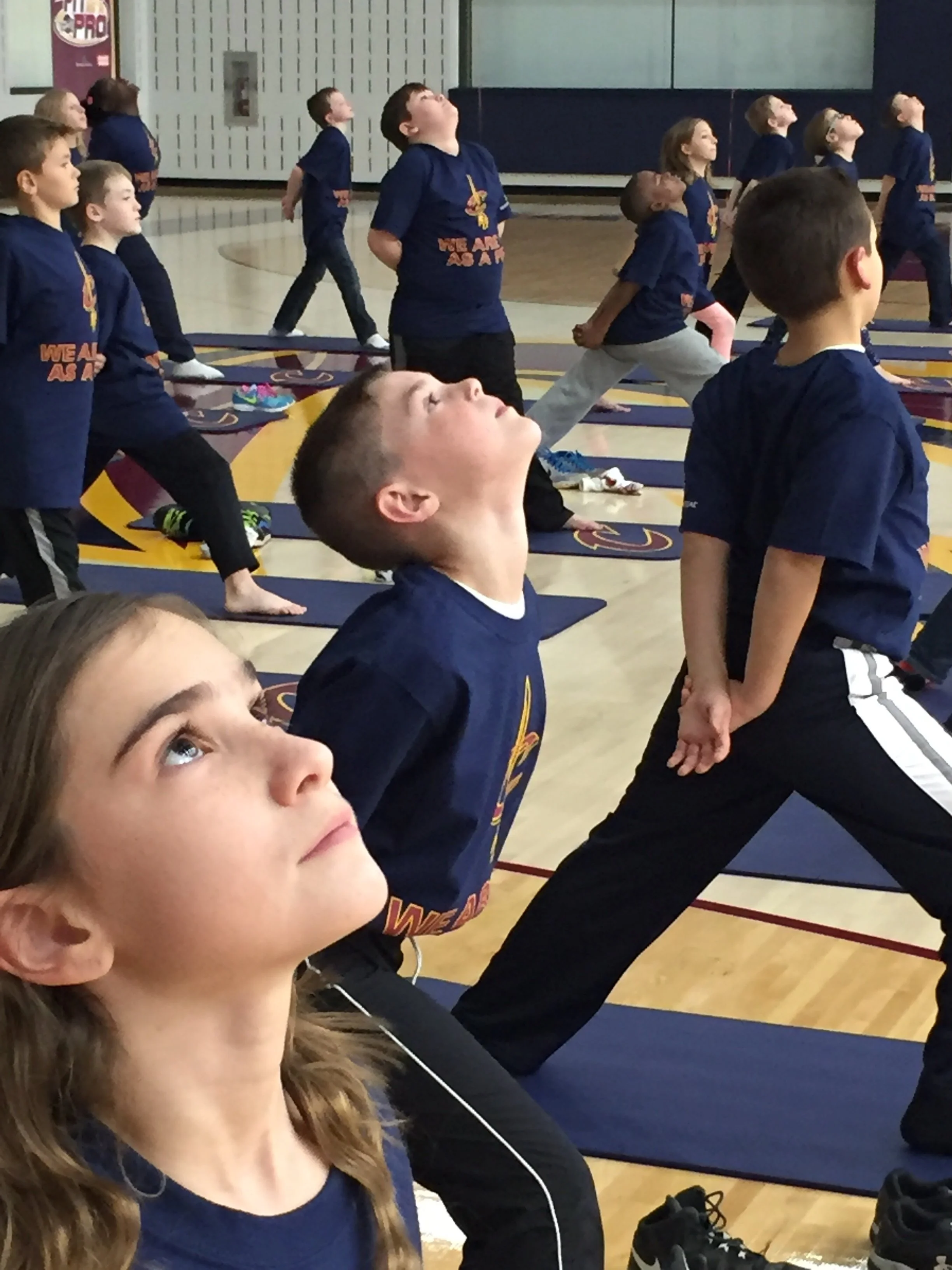 Yoga teachers Tammy, Daneen and Erin practiced with the NBA veteran to teach 4th grade students from Streetsboro about strong bodies and open hearts. The Fit As A Pro event was presented by Medical Mutual and Giant Eagle (WATCH VIDEO).