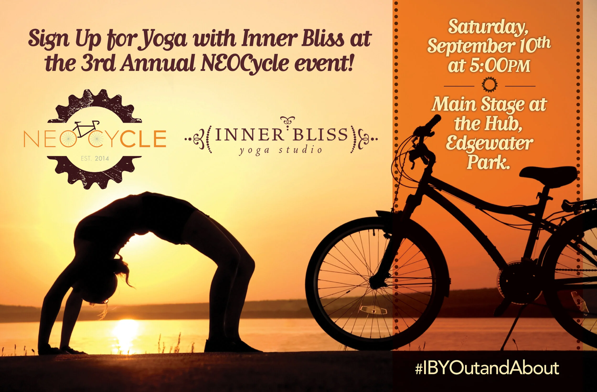 We are honored to offer the magical benefits of yoga at the third annual NEOCycle to get everyone warmed up prior to the highly anticipated Night Ride.