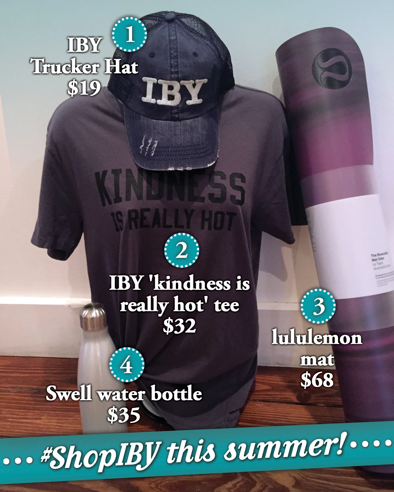 Summer Merch at IBY! Featured Merchandise May 31 Written By Geof Pelaia IBY trucker hat – $19IBY 'kindness is really hot' tee – $32.00lululemon may –$68Swell water bottle – $35.00 Geof Pelaia