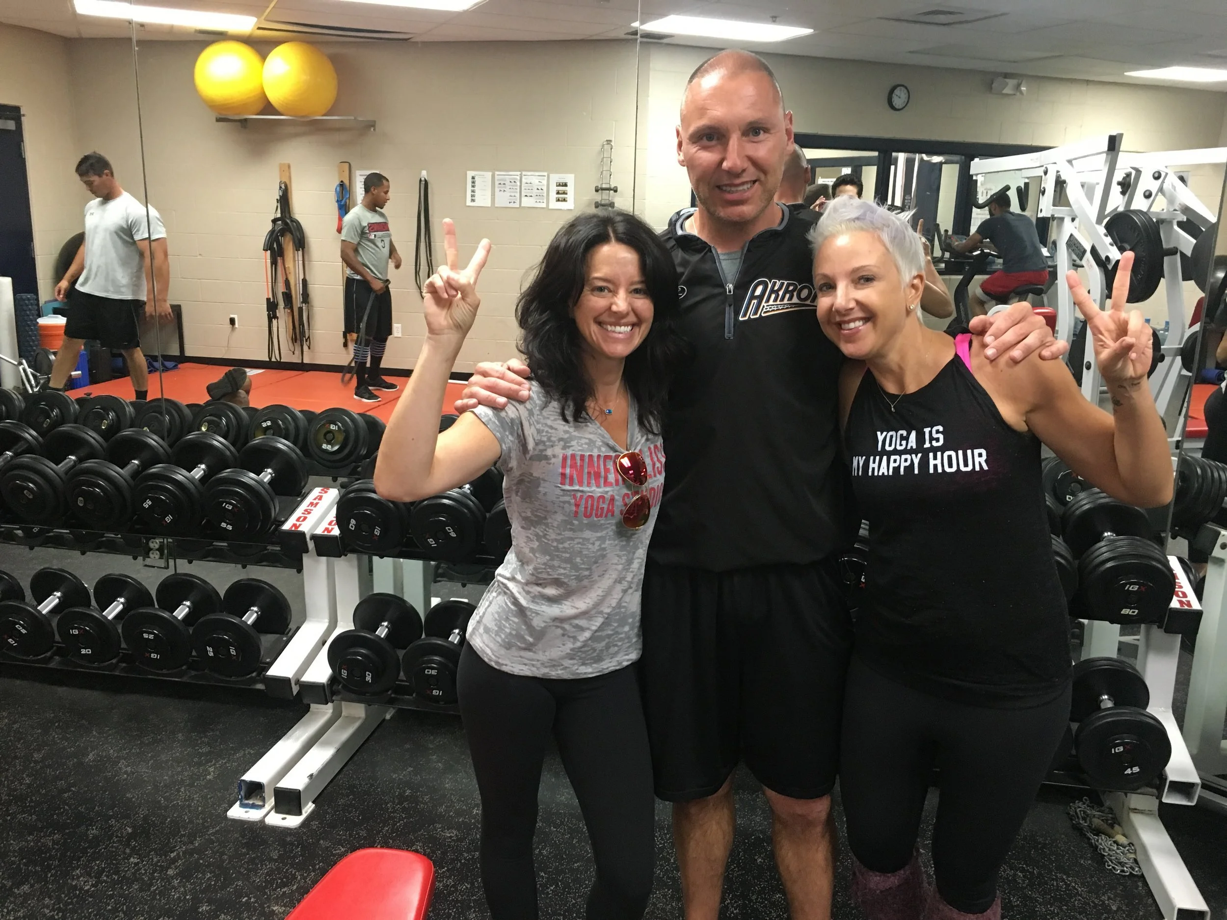 IBY teacher Katie Brown, Paul Synenkyj (Strength and Conditioning Coach for the Akron RubberDucks), and IBY teacher Kim Rush at the RubberDucks' training facility.